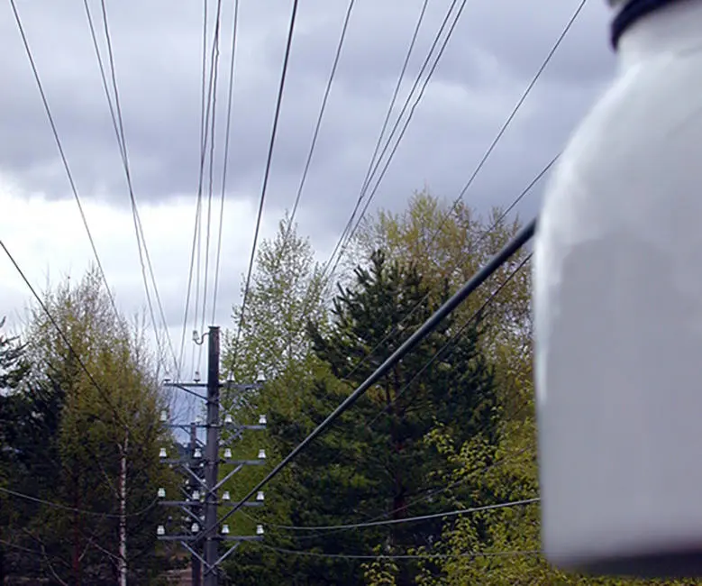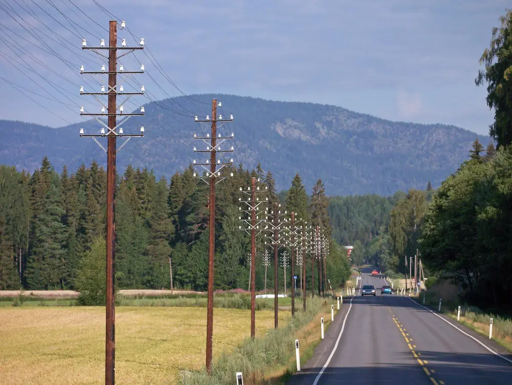 For some it’s hard to imagine that there can be anything special about telephone poles – until you have driven across Bamlesletta in Notodden. Tall and beautiful, the historic timber poles reach up through the cultural landscape, and form a majestic line between the road and the fields. This is the last remaining stretch of the national telephone line between Kristiania and Bergen, and the oldest preserved line course in Norway. It is the upper part of the poles that’s making it difficult to stay on the road as you’re driving along in 80 kilometres per hour. Viewed through modern eyes, early telecom technology bears the likeness of gigantic jewellery: Four, iron cross bars, each carrying four small, white porcelain hats, come together to form a crown-like construction. Between each of the 120 protected poles, from crown to crown, 17 wires stretch. 17 swaying communicational threads which once were what tied Norway together.