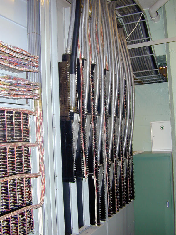- Ja. Grunnen til at dette er en manuell telefonsentral, er nok at fienden sannsynligvis ville sørget for at den automatiske telefonsentralen var ubrukelig. Man er veldig sårbar i krig hvis alt er automatisert og digitalisert. Disse kablene her?